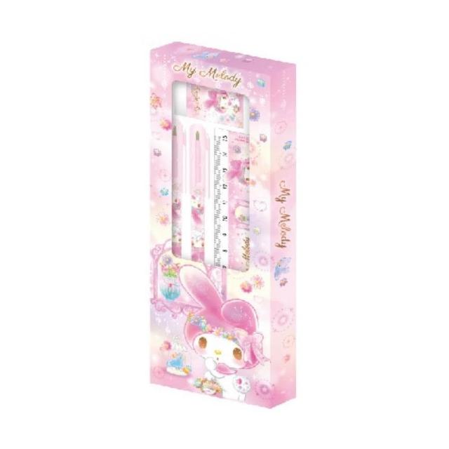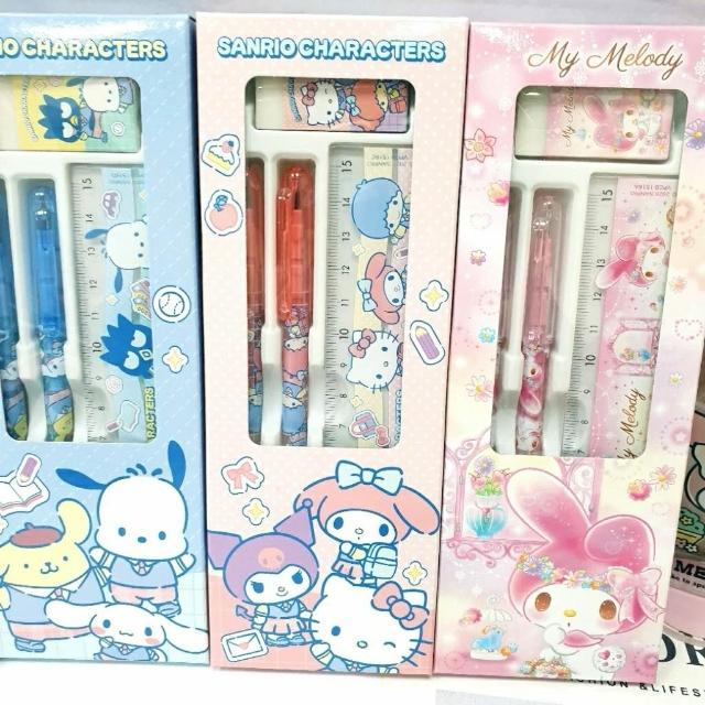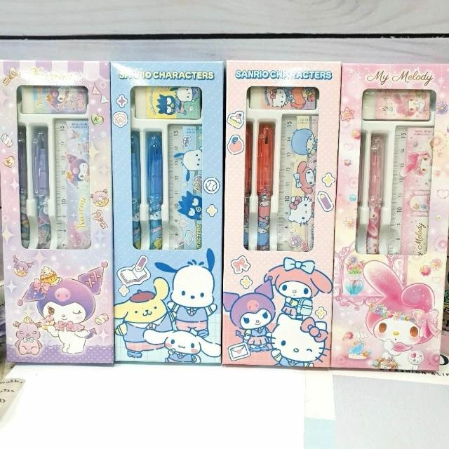 三麗鷗 文具四件組 kitty 文具組 酷洛米 美樂蒂 大耳狗 布丁狗 免削鉛筆 尺 橡皮擦 可愛文具禮盒