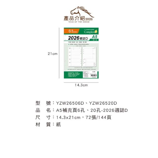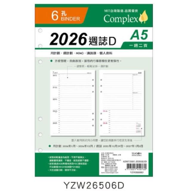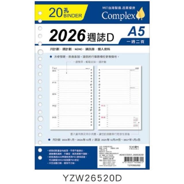 SEASON 四季紙品禮品2026年週誌D A5補充頁 6孔 20孔 橫線 萬用手冊內頁 活頁紙 行事曆 工商日誌 學習 旅遊 年度計劃