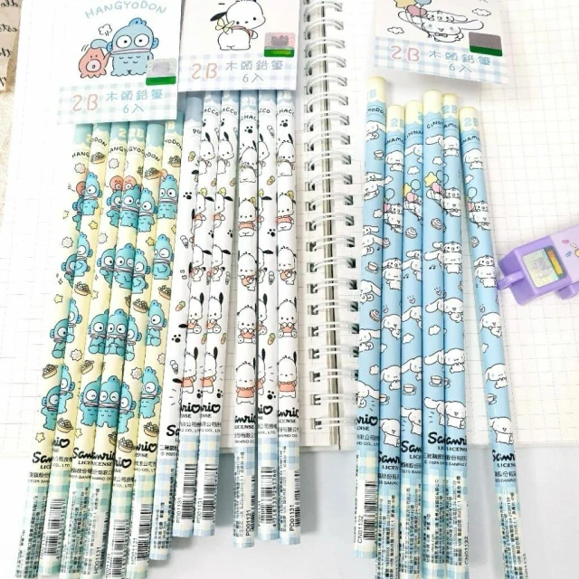 SANRIO 三麗鷗現貨正版 三麗鷗 6入木頭鉛筆 2B鉛筆 大耳狗 鉛筆 帕帢狗 人魚漢頓 6入鉛筆 圖筒鉛筆