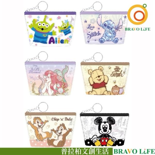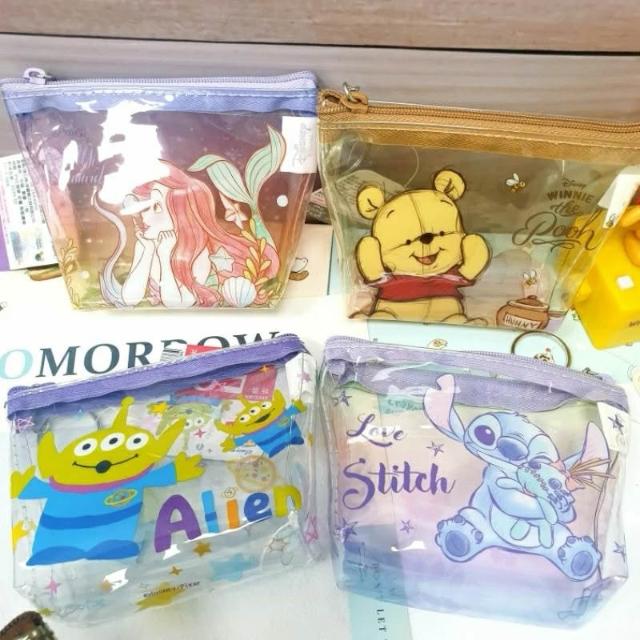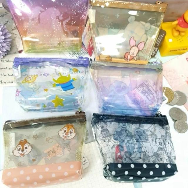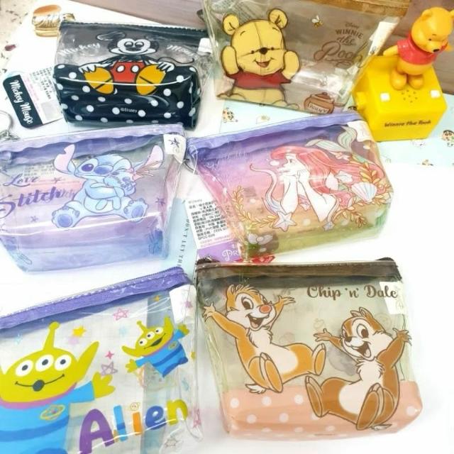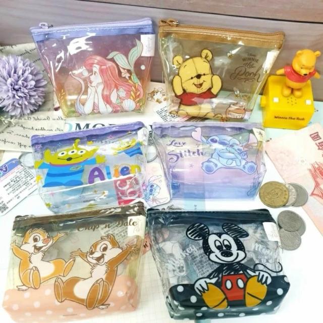 迪士尼 透明零錢包 三角透明袋 小物袋 可扣式 鑰匙圈錢包 維尼 米奇 小美人魚 史迪奇 奇奇蒂蒂 三眼怪