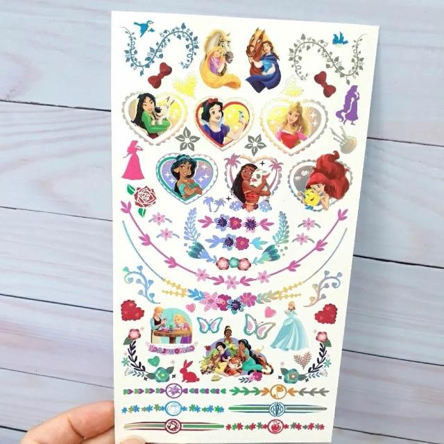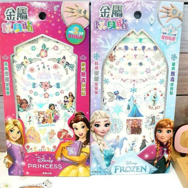 Disney 迪士尼迪士尼公主 金屬紋身貼 冰雪奇緣 雷射燙銀 紋身貼紙 小美人魚 貝兒 紋身貼 親膚無毒 安娜 艾莎 金屬風紋身