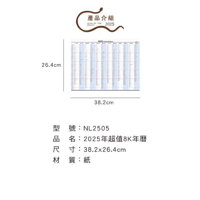 2026年 超值8K年曆 月曆 行事曆 NL2605 年度計劃表 年度月計劃 MEMO 行程規劃 備忘 旅行