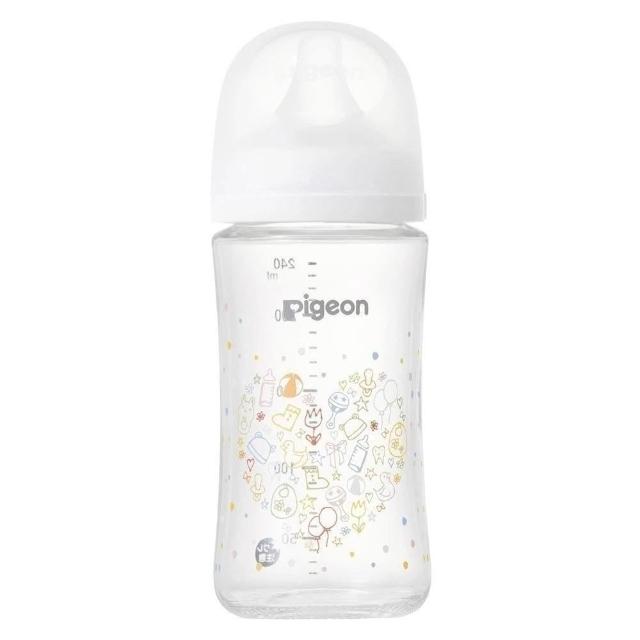 Pigeon 貝親第三代 母乳實感 寬口徑 矽膠護層 彩繪款玻璃奶瓶