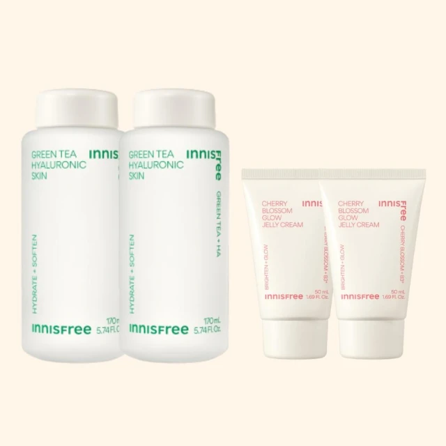 (短效特價)綠茶玻尿酸保濕調理液-170ml*2 櫻花透亮水凝霜-50ml*2免運韓國公司貨