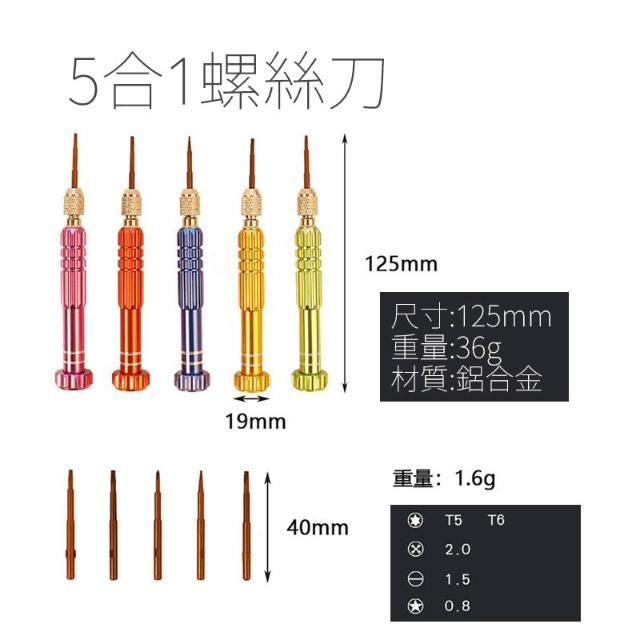 五件式 5合1鋁合金螺絲刀 鋁殼高質感 子 T5 手機拆機工具 螺絲刀 螺絲刀套裝 螺絲起子 螺絲起 手機維修工具KI