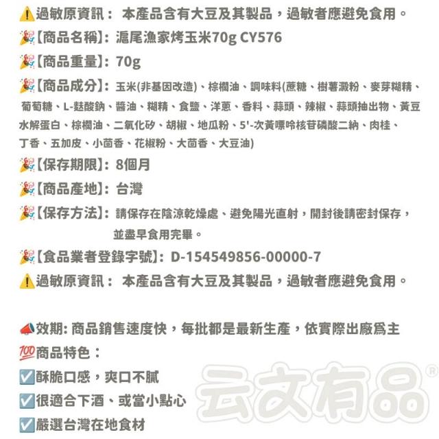 滬尾漁家烤玉米 70g 五辛素 烤玉米粒 食品 烤玉米 零食 餅乾 小點心 烤玉米餅乾 碳烤醬香 玉米 小包裝 70食品