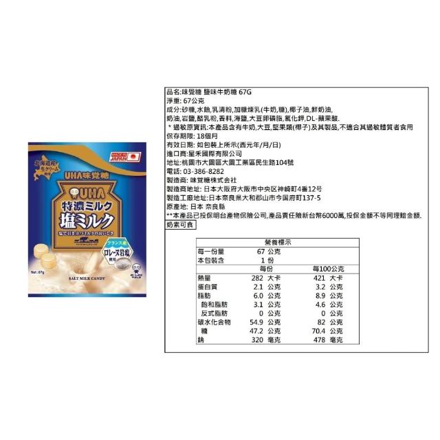 UHA 味覺糖味覺糖 日本 特濃牛奶糖 原味 抹茶味 鹽味 袋裝 67克