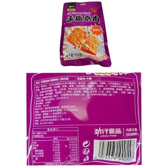 勁仔 袋裝 賣場 手撕素肉 燒烤味 甜麻味 75g 公司貨