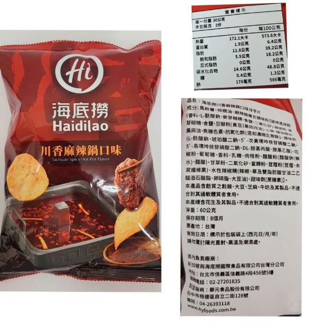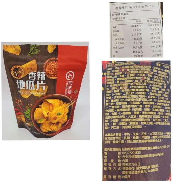 海底撈海底撈 餅乾 系列 麻辣蝦薯條 50g香辣地瓜片 75g川香麻辣鍋洋芋片 60g