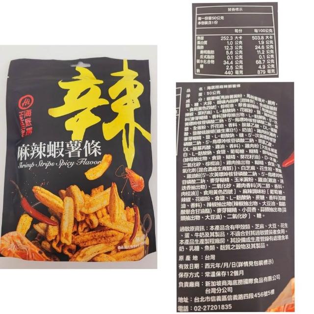海底撈海底撈 餅乾 系列 麻辣蝦薯條 50g香辣地瓜片 75g川香麻辣鍋洋芋片 60g