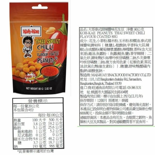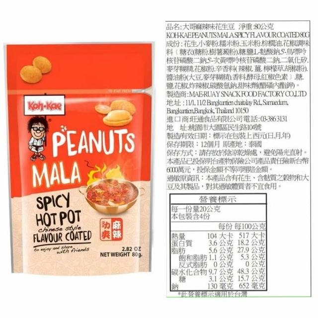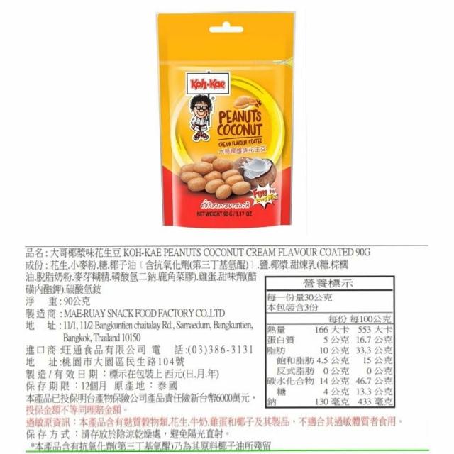泰國 Koh-Kae 大哥 花生豆 青豌豆 椰漿味 雞汁味 泰式甜辣醬 麻辣味 鹽味 魷魚