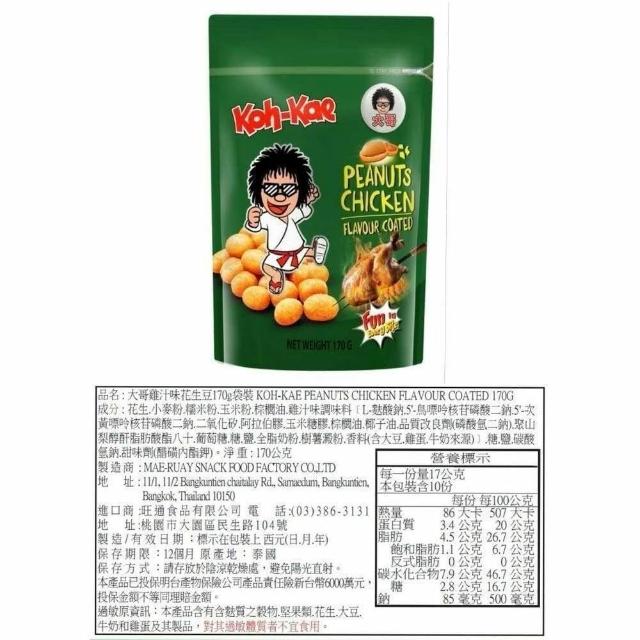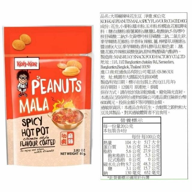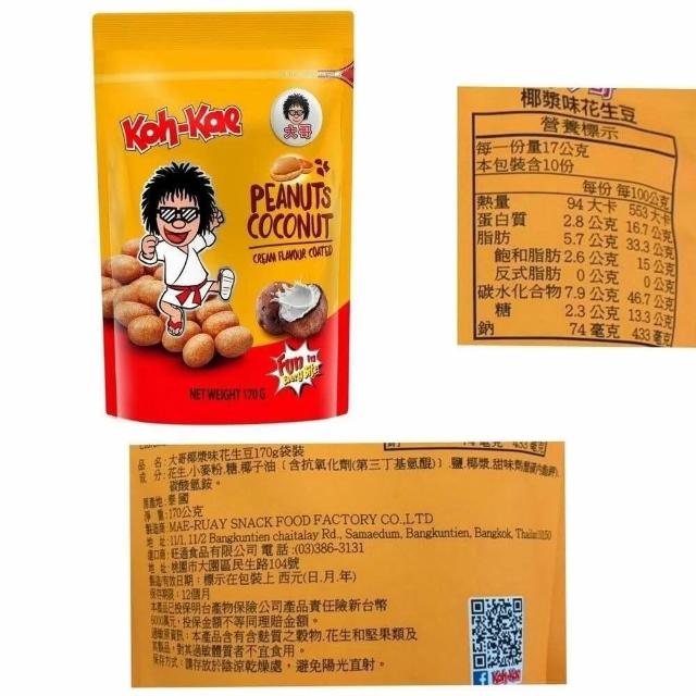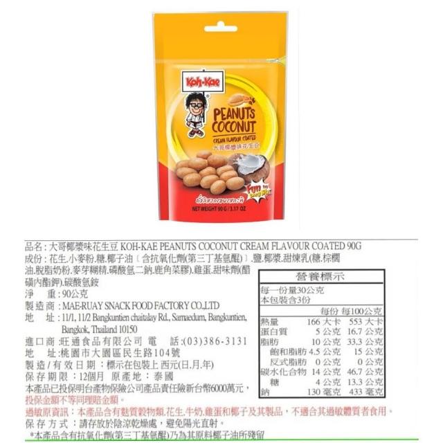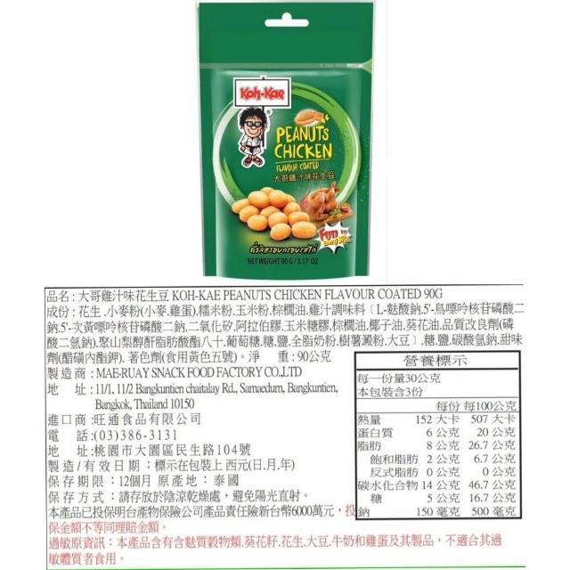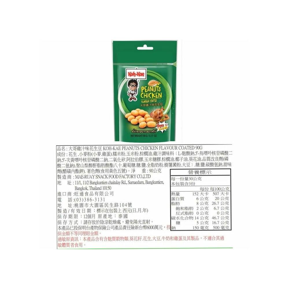 泰國 Koh-Kae 大哥 花生豆 青豌豆 椰漿味 雞汁味 泰式甜辣醬 麻辣味 鹽味 魷魚