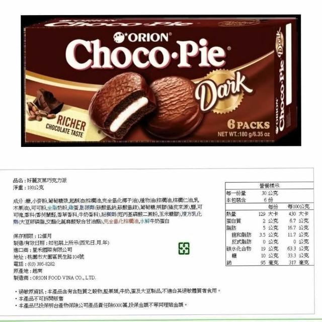 ORION 歐萊爾韓國 ORION 好麗友 巧克力派 6入 黑巧克力派 6入 12入 蛋黃派 2入 6入 12入