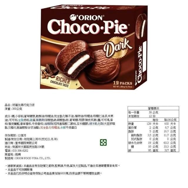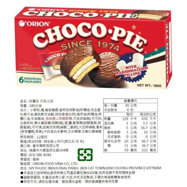ORION 歐萊爾韓國 ORION 好麗友 巧克力派 6入 黑巧克力派 6入 12入 蛋黃派 2入 6入 12入