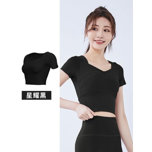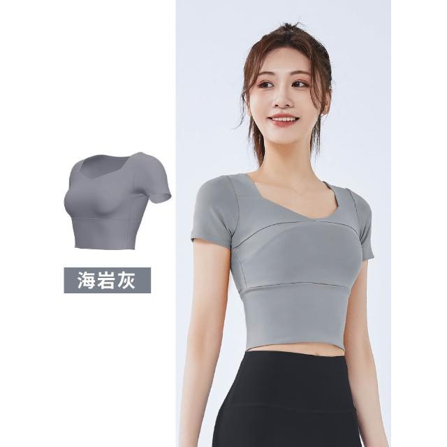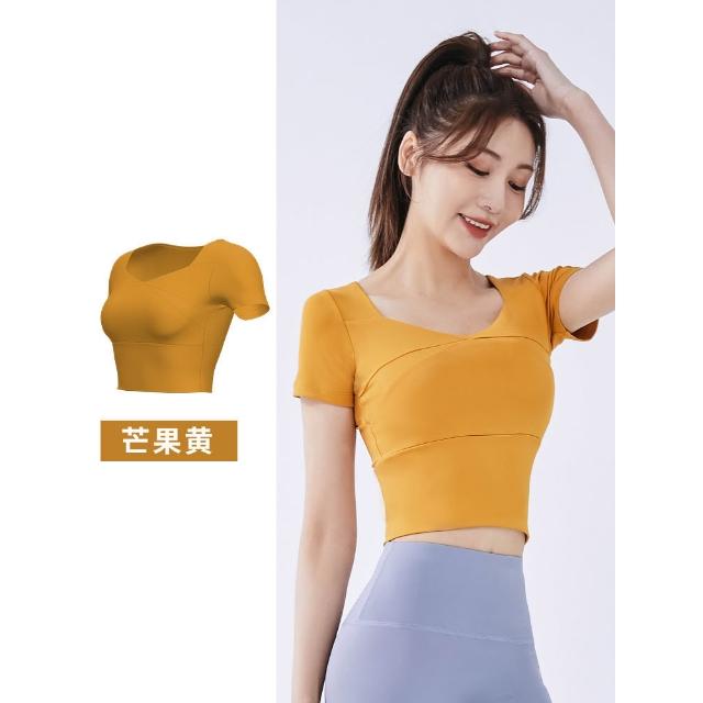 短款露臍速幹可拆卸胸墊瑜伽服 運動T恤 瑜伽服 運動短袖 跑步緊身裸感透氣健身瑜伽T恤