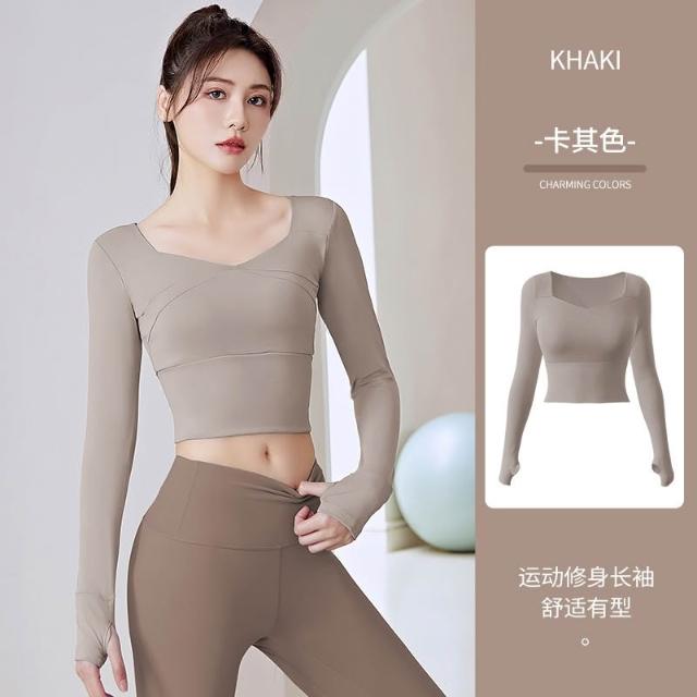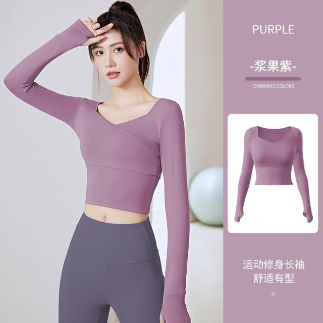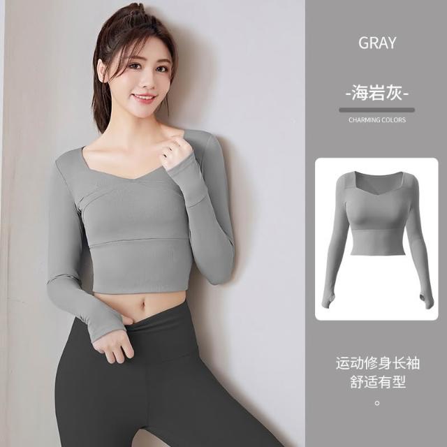免穿文胸拼接瑜伽服 瑜伽上衣 長袖瑜珈服 瑜伽服 運動上衣 長袖瑜珈服 吸汗透氣運動服