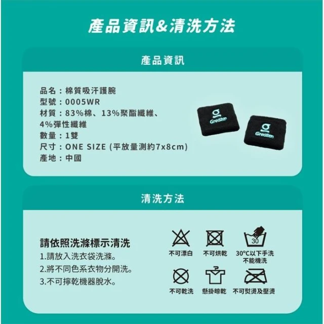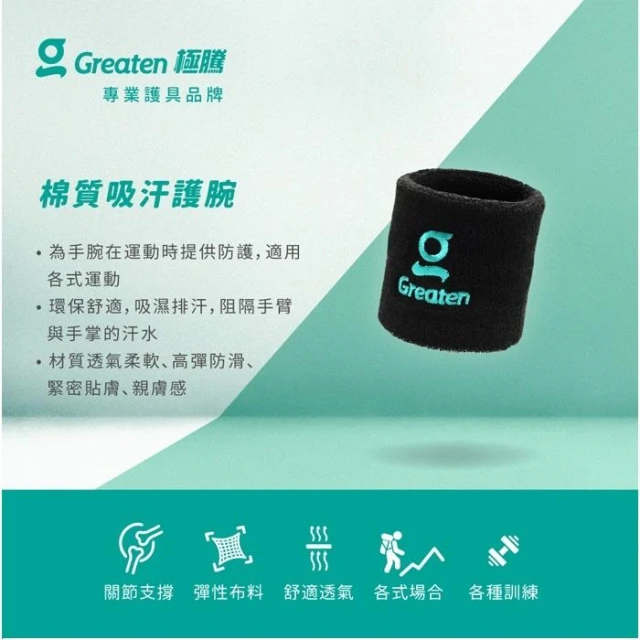 Greaten 極騰護具 運動防護 棉質吸汗 護腕 雙包裝(0005WR)