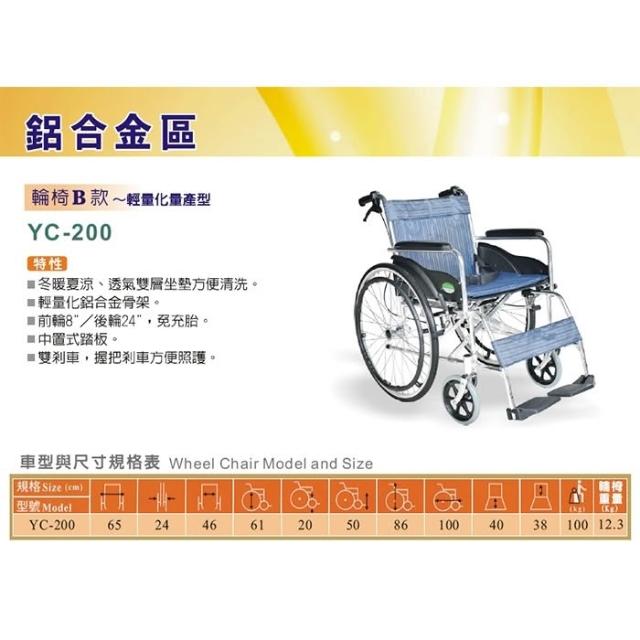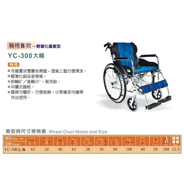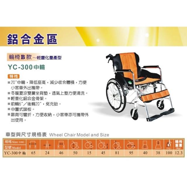 頤辰醫療機械式輪椅(未滅菌) 20吋中輪 中置式踏板/可折背/輪椅B款(YC-300)
