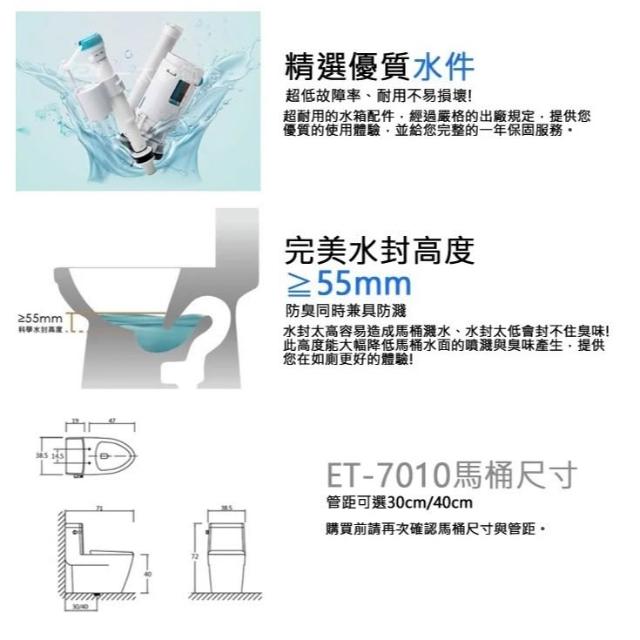 ITAI一太 陶瓷抗汙釉面 噴射虹吸式-金級省水馬桶 71x38.5x72cm(ET-7010)