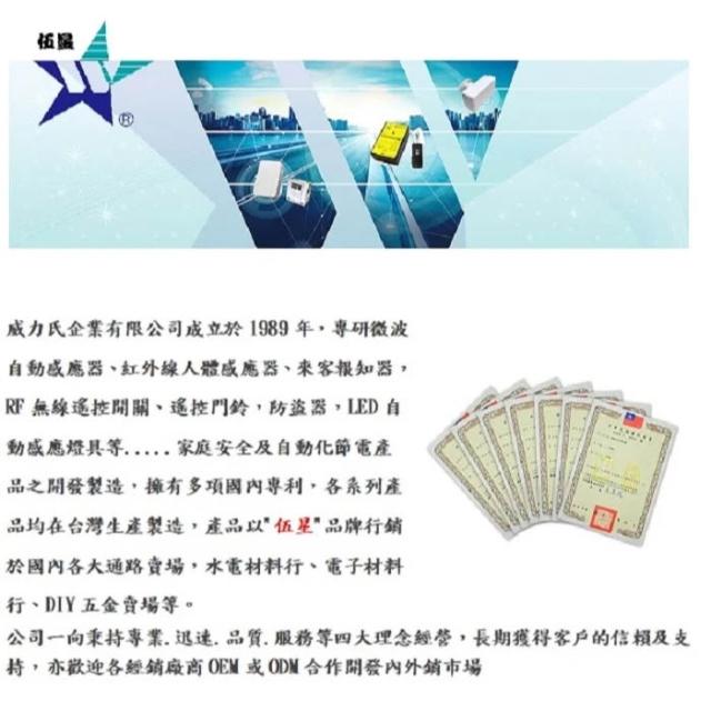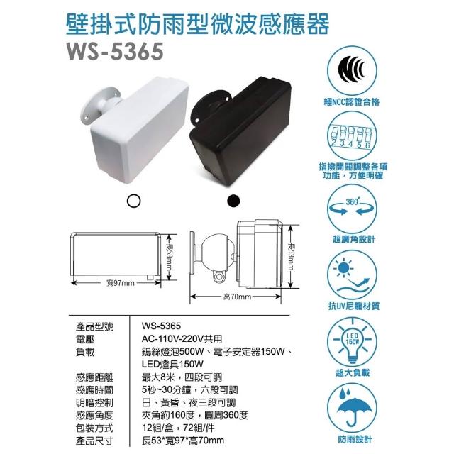 伍星 壁掛式 防雨型微波自動感應器(WS-5365)