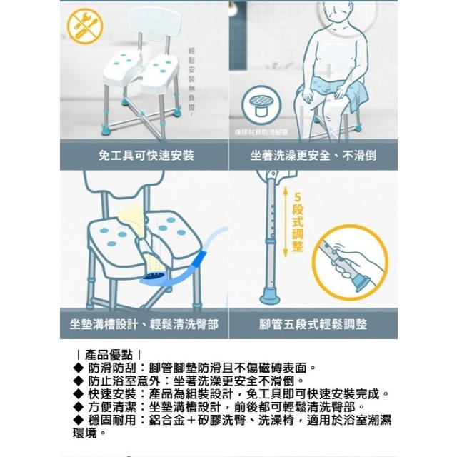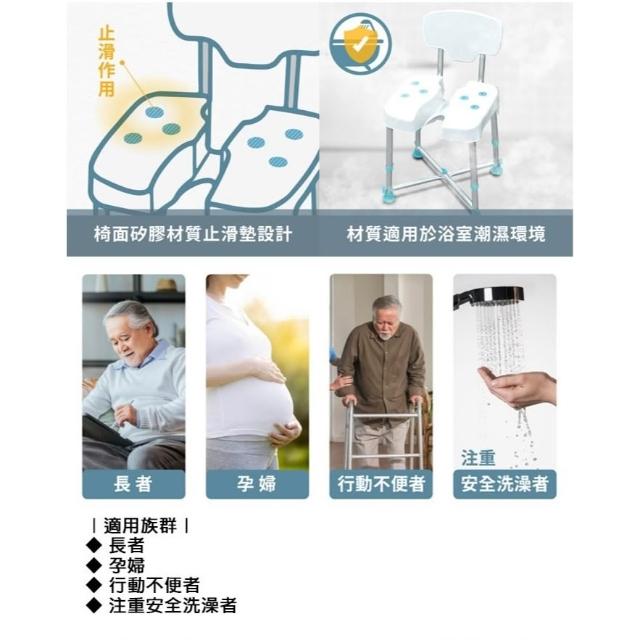日安系列 坐墊溝槽設計 Gentle 坐浴洗澡椅(有背款)