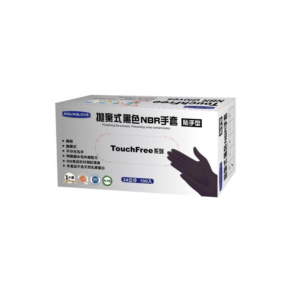 旭鑫病患檢查用手套(未滅菌)(無粉)AQUAGLOVE Touch Free系列-黑色NBR手套(1箱/10盒)