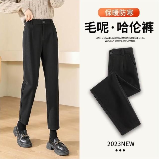 OOTD全尺碼毛呢煙管褲女 小腳褲 九分褲 西裝褲 秋冬季加絨加厚 直筒褲 高腰長褲女 哈倫褲 小個子 顯瘦百搭褲子