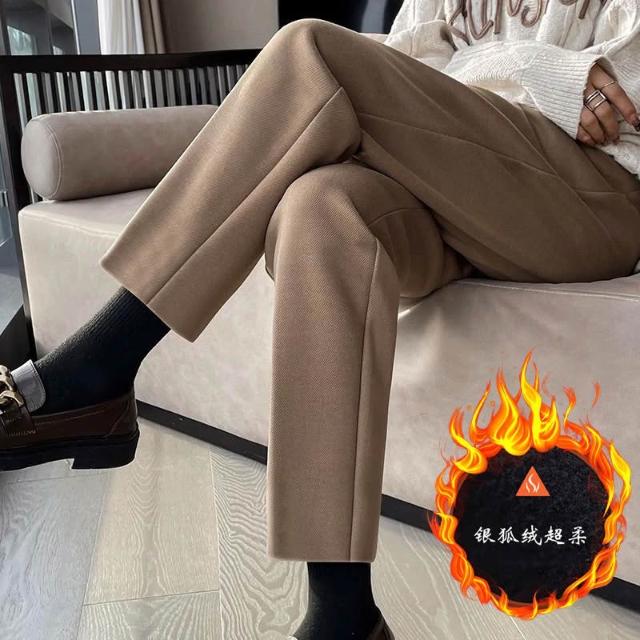 OOTD全尺碼毛呢煙管褲女 小腳褲 九分褲 西裝褲 秋冬季加絨加厚 直筒褲 高腰長褲女 哈倫褲 小個子 顯瘦百搭褲子