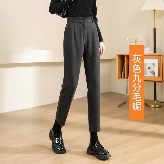 OOTD全尺碼毛呢煙管褲女 小腳褲 九分褲 西裝褲 秋冬季加絨加厚 直筒褲 高腰長褲女 哈倫褲 小個子 顯瘦百搭褲子