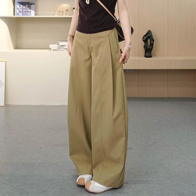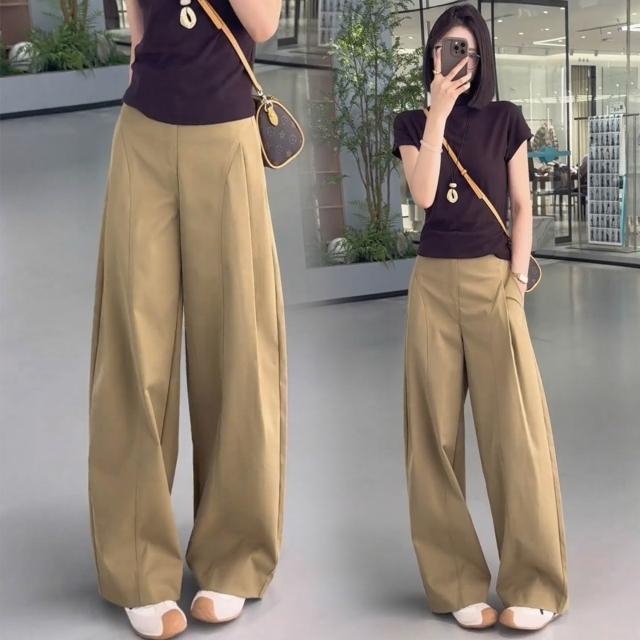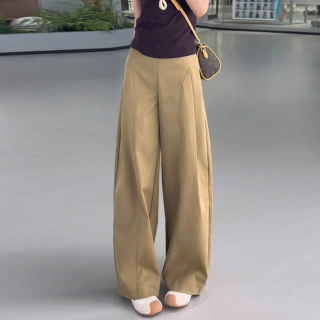 OOTD全尺碼闊腿褲女 窄版西裝褲 休閑褲 拖地長褲 側壓褶 秋季新款 高腰寬松長褲 直筒褲子 梨形身材 遮胯顯瘦