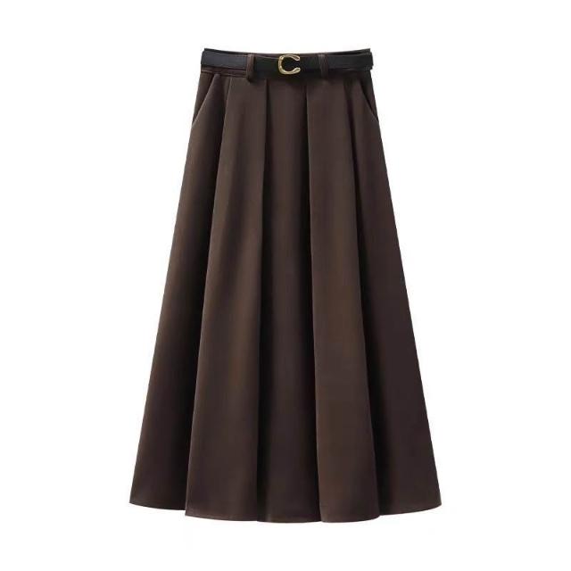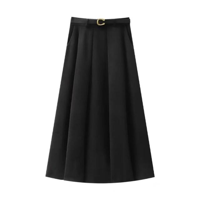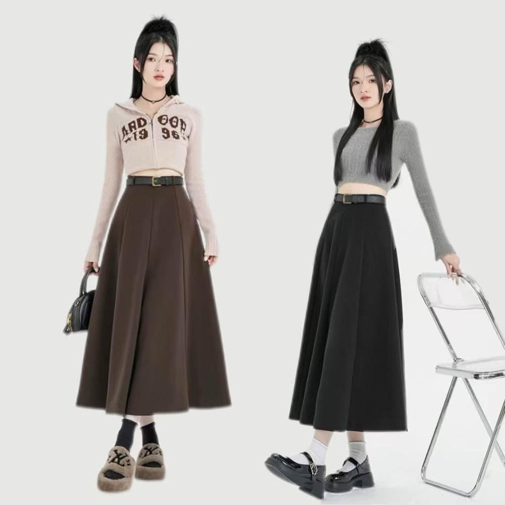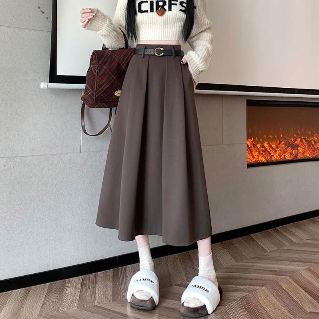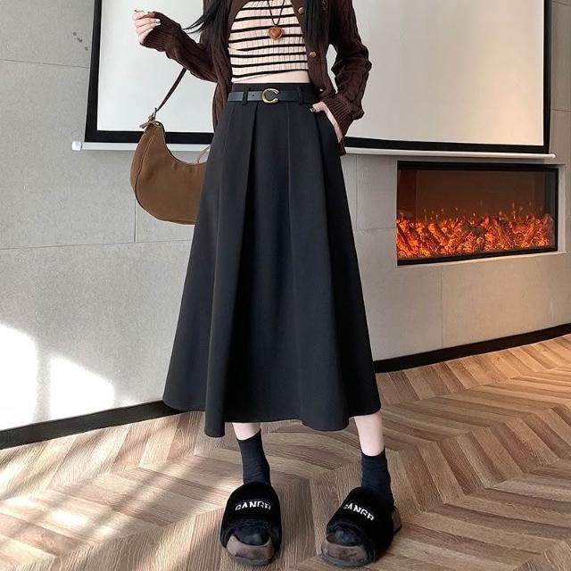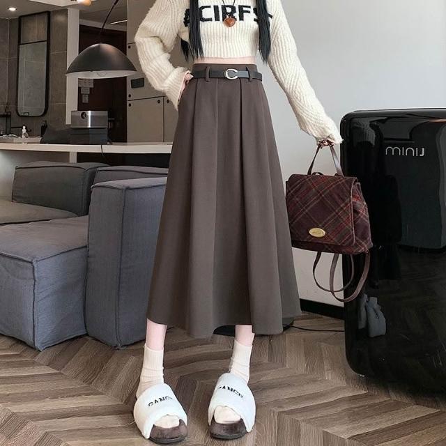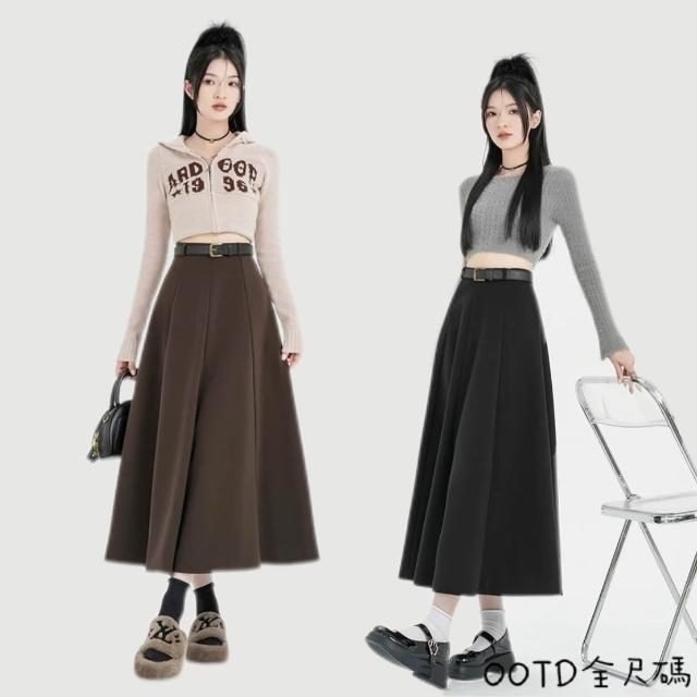 OOTD全尺碼大尺碼中長款毛呢半身裙 百褶裙 小香風大擺裙 大碼女裝胖mm 秋冬新款 高腰裙子 遮胯顯瘦中長裙