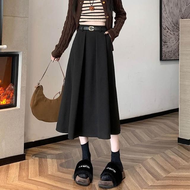 OOTD全尺碼大尺碼中長款毛呢半身裙 百褶裙 小香風大擺裙 大碼女裝胖mm 秋冬新款 高腰裙子 遮胯顯瘦中長裙