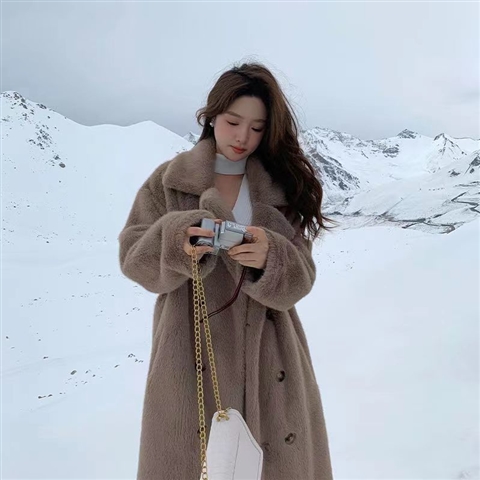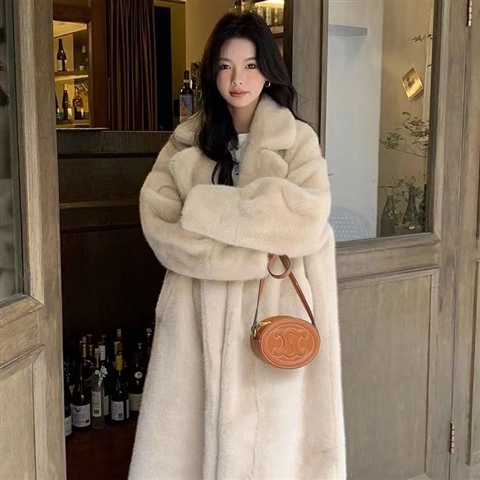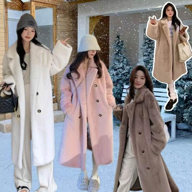 OOTD全尺碼仿皮草大衣 仿水貂毛大衣 美拉德 秋冬季新款 加絨加厚 長款西裝領大衣 寬鬆外套 棉服大衣 保暖大衣