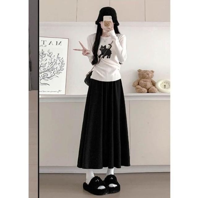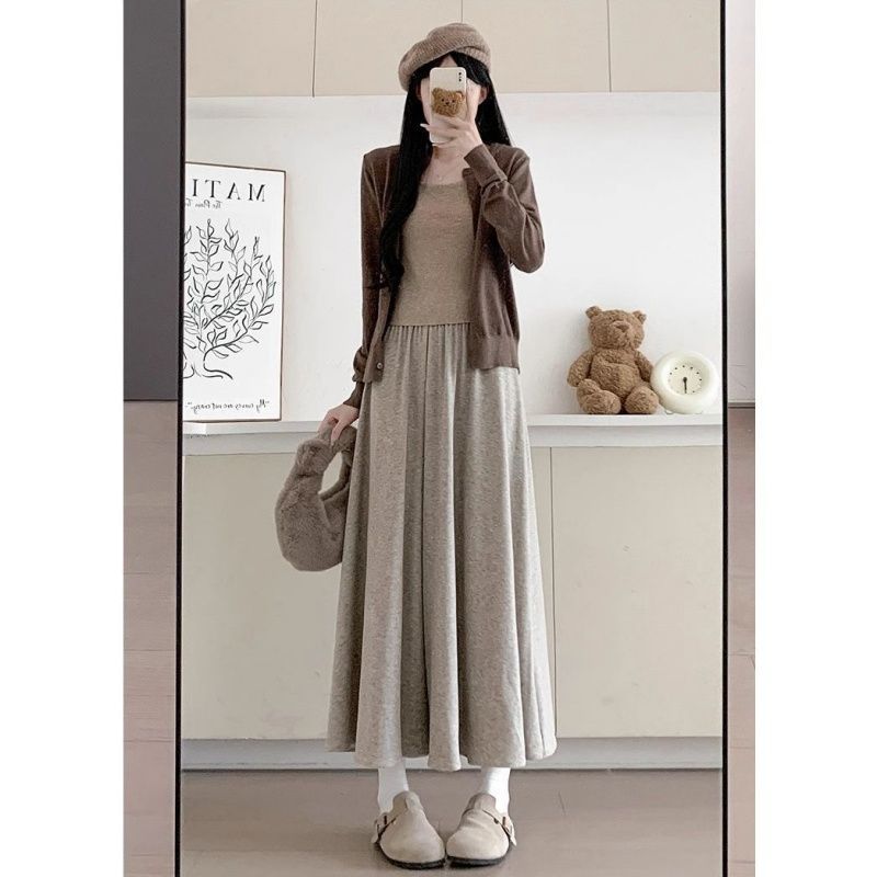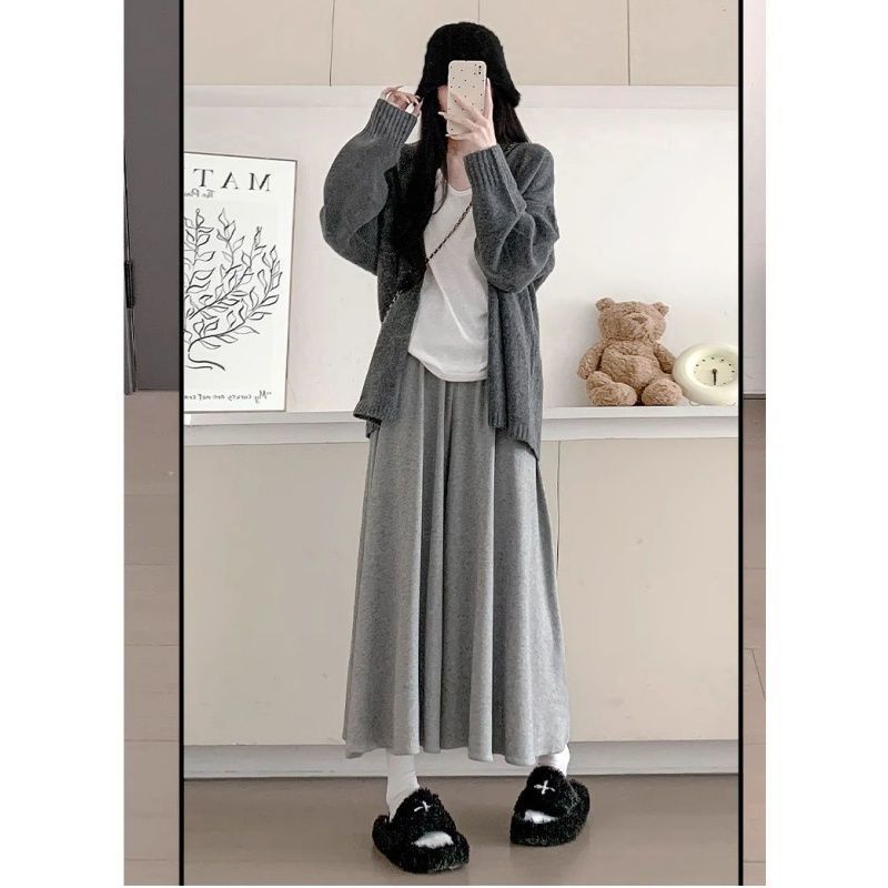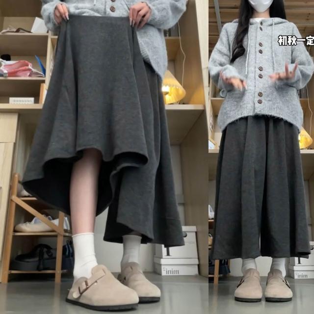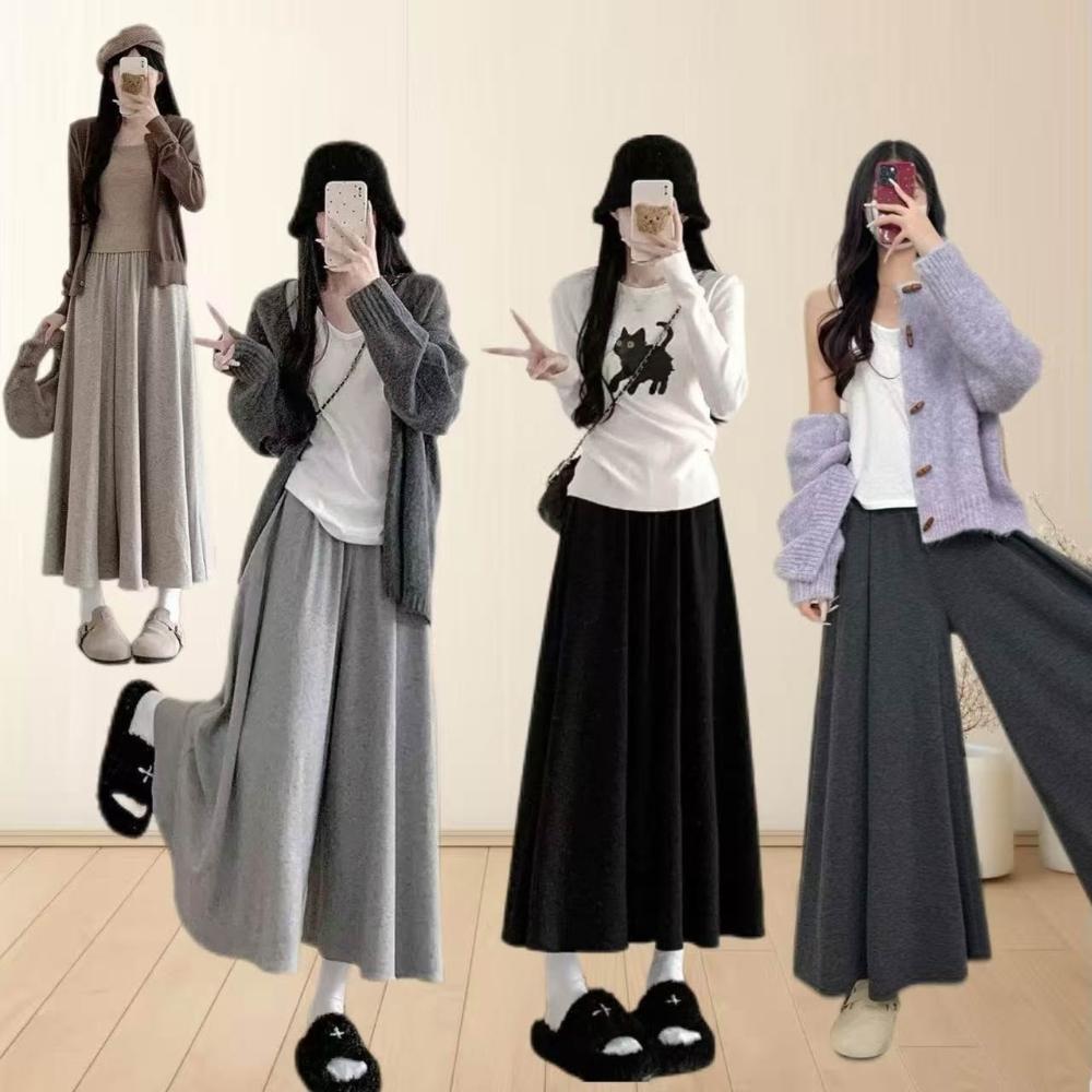 OOTD全尺碼大尺碼 闊腿裙褲女 糯米褲裙 軟綿綿褲子 秋冬季垂感長褲 寬松顯瘦 休閑褲 小個子半身裙 中長裙