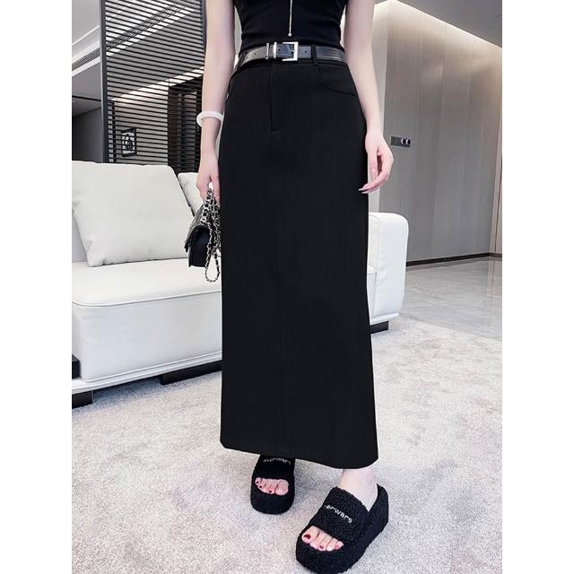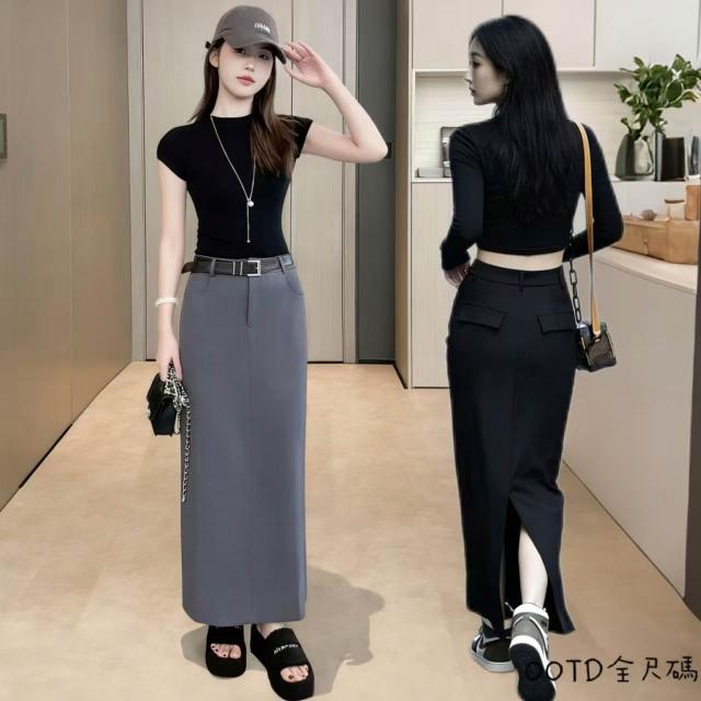 OOTD全尺碼西裝半身裙女 後開叉包臀裙 A字裙 中長款裙子 長裙 高腰顯瘦直筒裙 韓系半身裙 氣質中長裙
