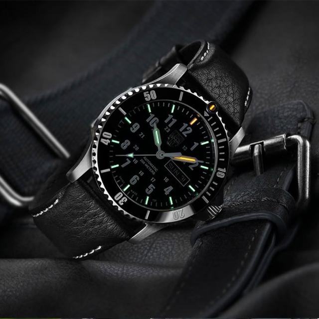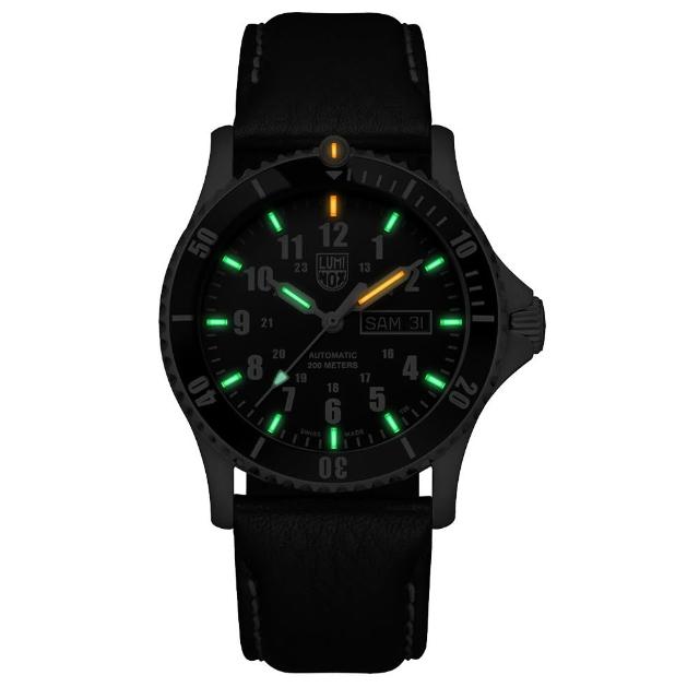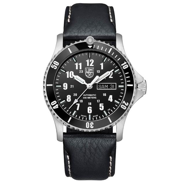 LUMINOX 雷明時Sport Timer 200米潛水自動機械錶 42MM / 純黑 / 黑陶瓷圈 / 牛皮錶帶