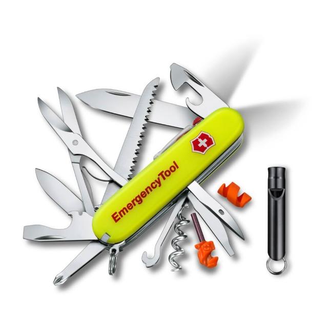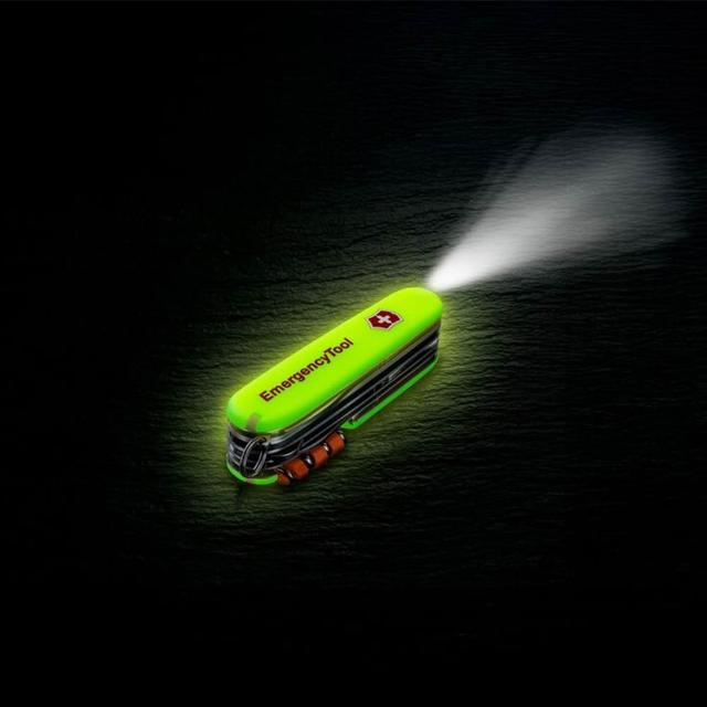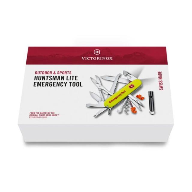 VICTORINOX 瑞士維氏23用 LED燈 Huntsman Lite 緊急救難瑞士刀-螢光黃|專業生存救難型、內置打火棒、緊急口哨