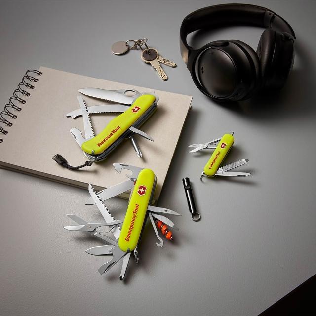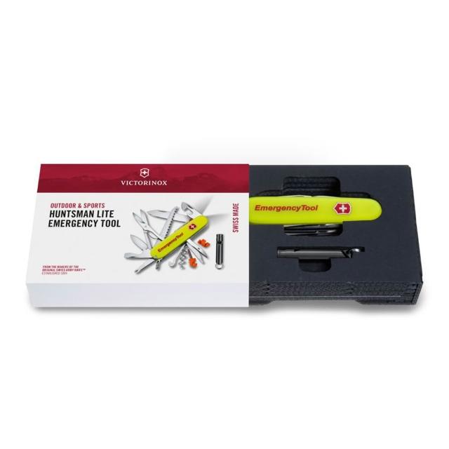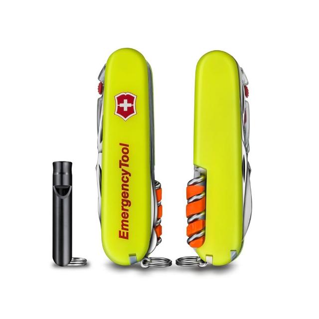 VICTORINOX 瑞士維氏23用 LED燈 Huntsman Lite 緊急救難瑞士刀-螢光黃|專業生存救難型、內置打火棒、緊急口哨
