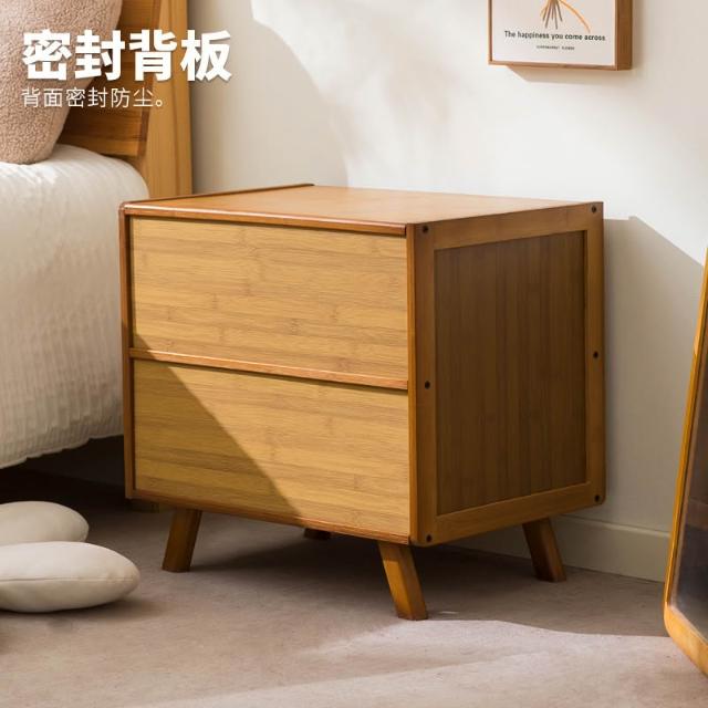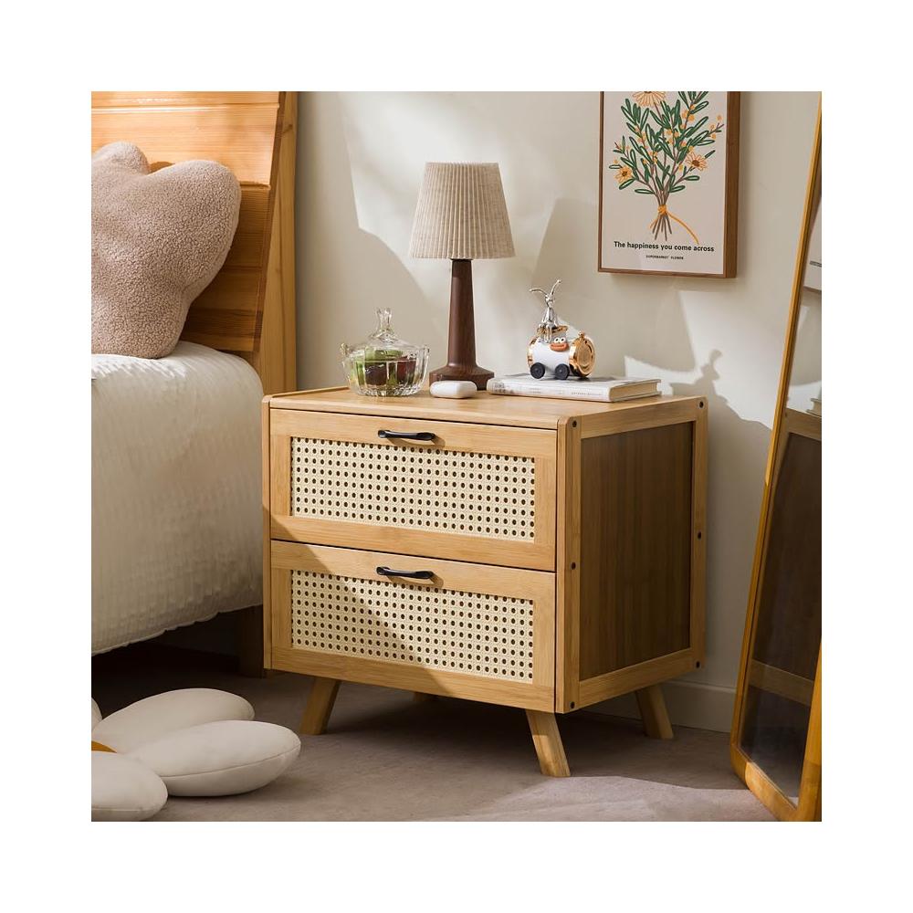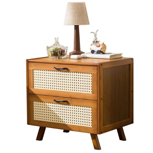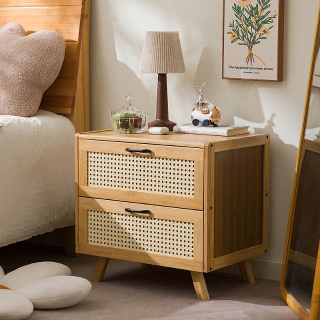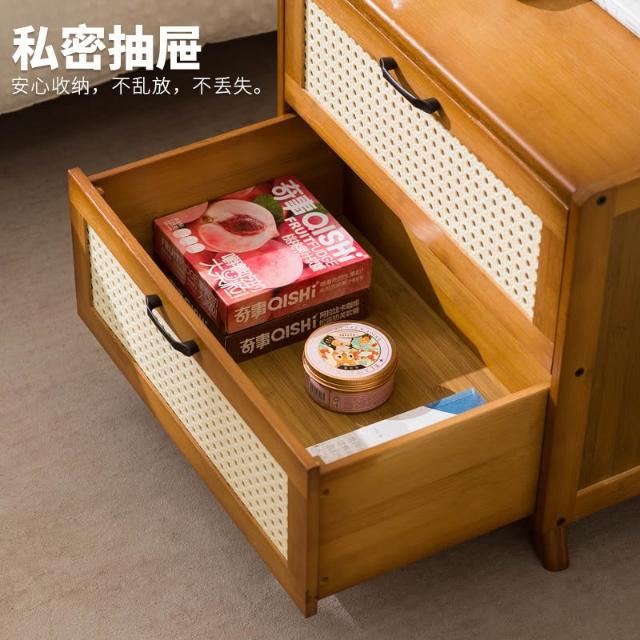 OSLE 歐適樂中古風實木床頭柜藤編家用床邊柜簡約臥室床頭柜落地式收納組合柜