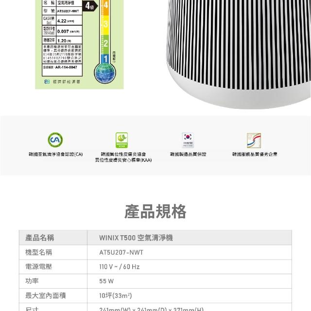 WinixT500(AT5U207-NWT) 威小淨 WIFI智能空氣清淨機