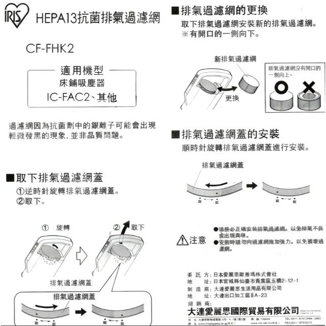 IRIS OHYAMA 愛麗思歐雅瑪IRIS OHYAMA原廠耗材 IC-FAC2/FAC3塵蟎機專用銀離子HEPA13過濾網2入 CF-FHK2