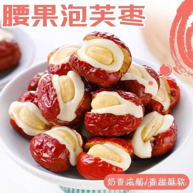 文文甄選 腰果泡芙棗新疆特産網紅夾心紅棗奶酪棗抱抱果獨立包裝休閒小零食