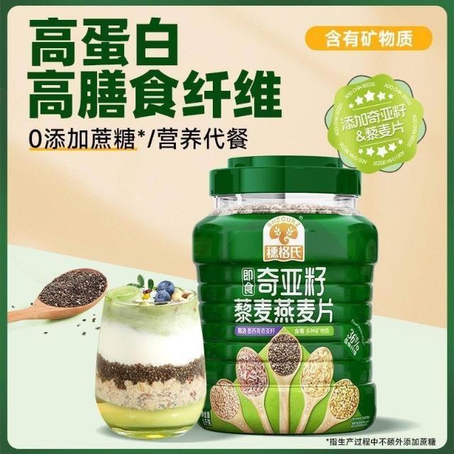 文文優選穗格氏奇亞籽燕麥片藜麥片即食早餐速食衝飲麥片健身飽腹1000g