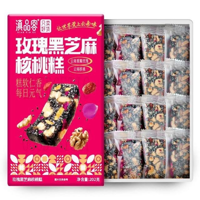 文文優選滇品客雲南玫瑰黑芝麻核桃軟糕玫瑰堅果切糕傳統休閒零食糕點小吃