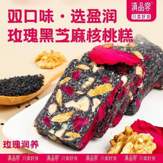 文文優選滇品客雲南玫瑰黑芝麻核桃軟糕玫瑰堅果切糕傳統休閒零食糕點小吃