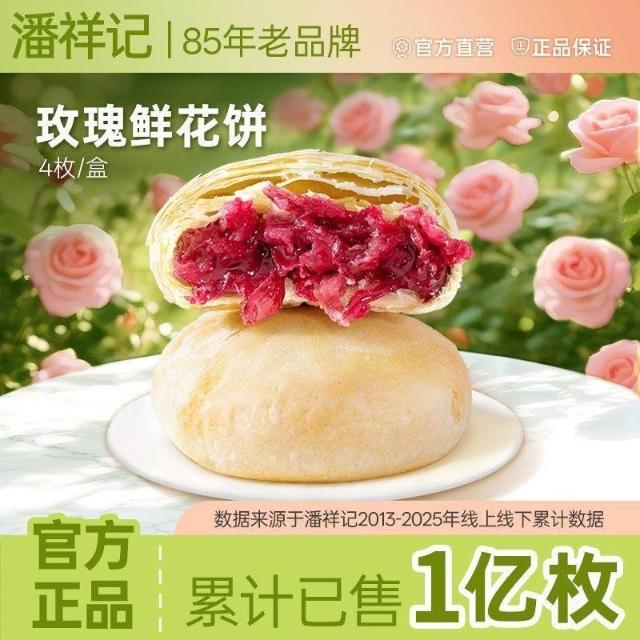 文文優選潘祥記玫瑰鮮花餅4枚裝雲南特產玫瑰鮮花餅下午茶糕點心休閒零食