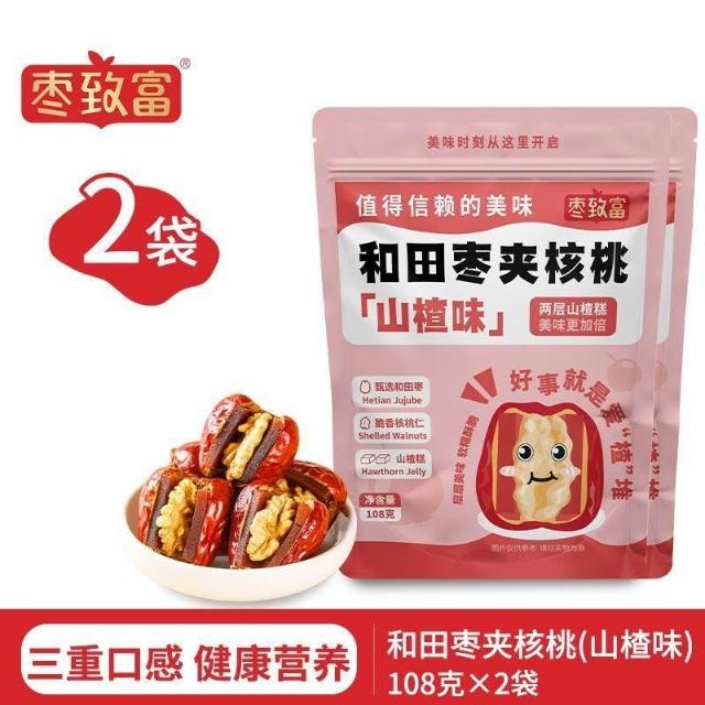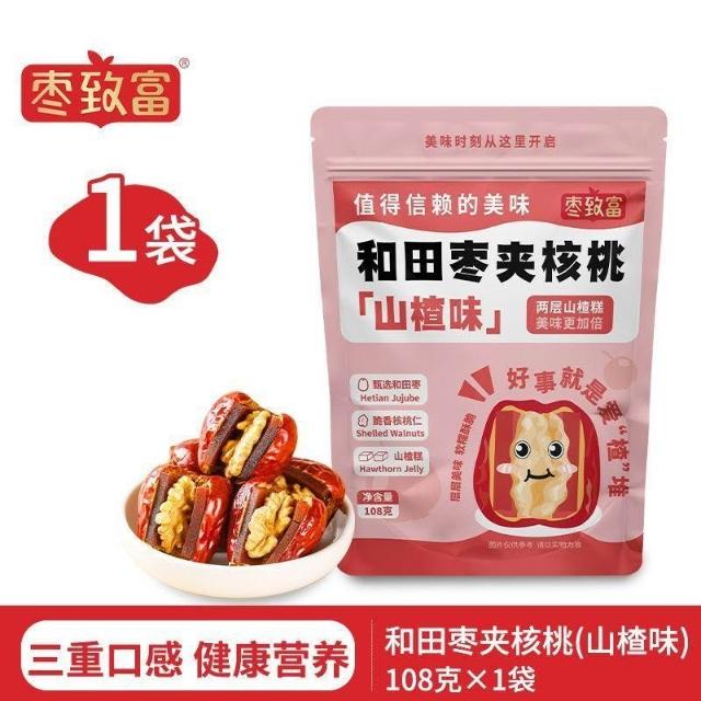 文文優選棗致富新疆和田棗夾核桃仁夾山楂獨立包裝紅棗夾心核桃仁休閒零食