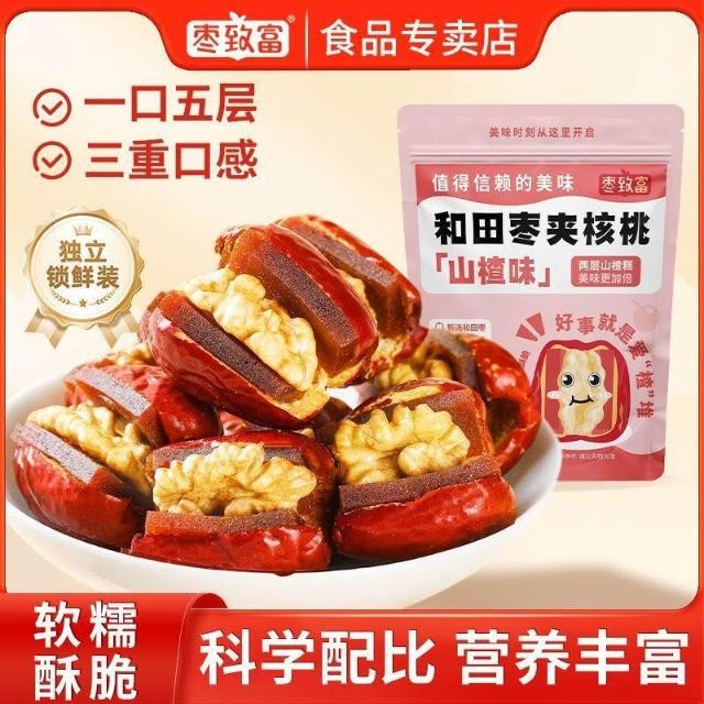 文文優選棗致富新疆和田棗夾核桃仁夾山楂獨立包裝紅棗夾心核桃仁休閒零食