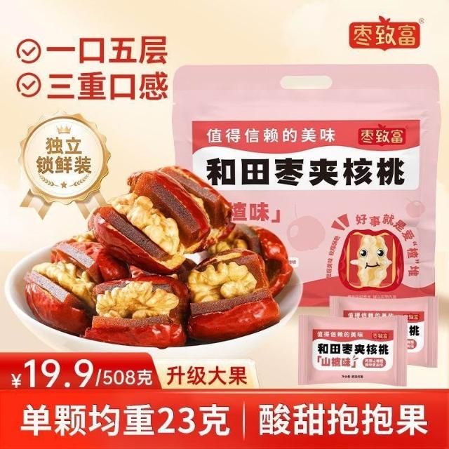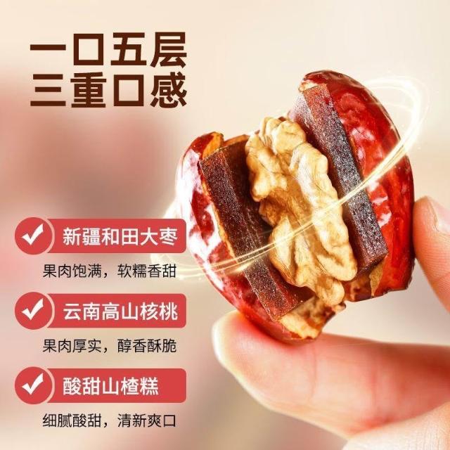 文文優選棗致富新疆和田棗夾核桃仁夾山楂獨立包裝紅棗夾心核桃仁休閒零食