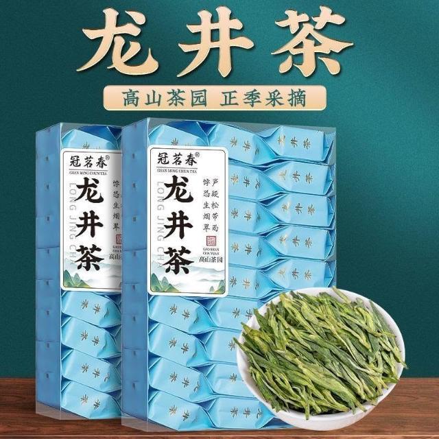 文文優選冠茗春龍井茶正宗2025新茶浙江綠茶濃香型獨立包裝小袋裝禮盒裝